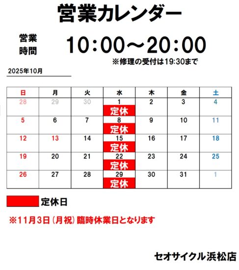 ホーム > トピックス > ◇ 10月の営業カレンダー ◇